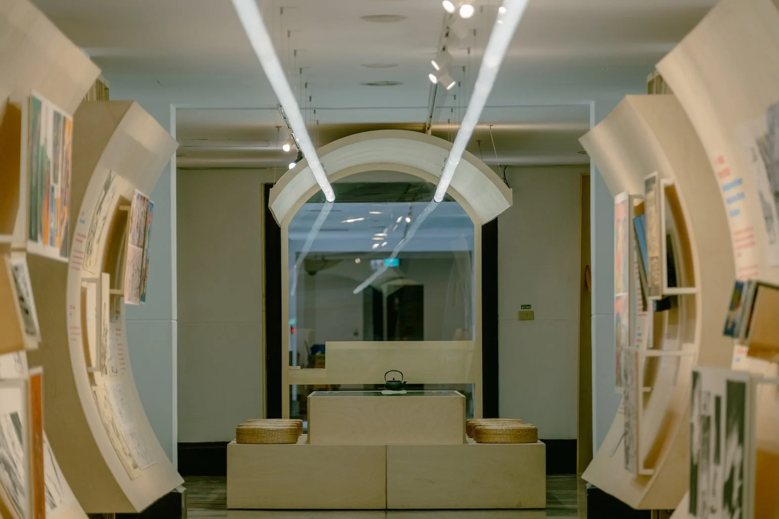 本展以「時空茶庵」為概念,將總統府長廊轉化為跨越三檔漫畫時空特展的時空節點。